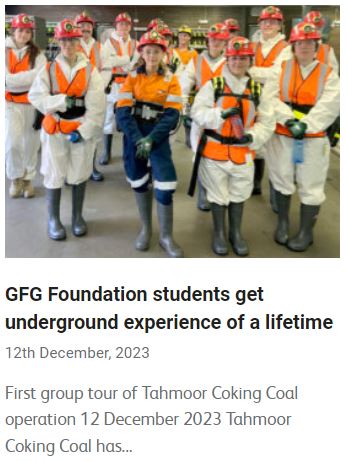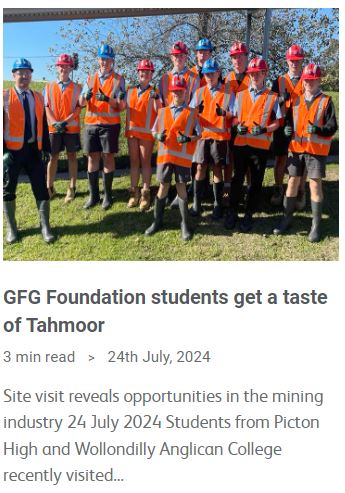 The GFG Foundation continues to grow at Tahmoor Coking Coal with participating students gaining valuable industry insights from two recent site visits.